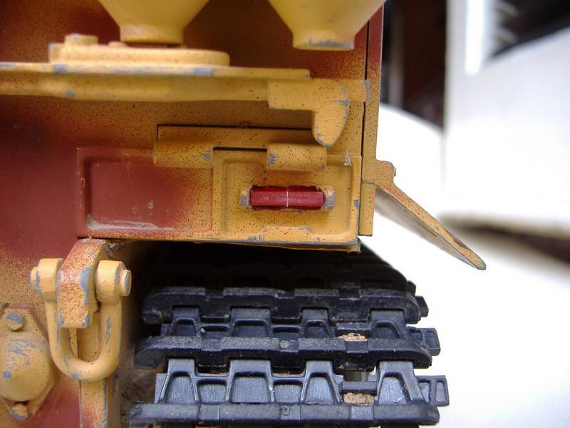 The convoy backlight was on the left rear top of mudflap only for the Tiger I and blue tube in color for late tigers. Early and initial Tigers had a square red and orange lamping convoy light in the same location. A secondary back light was sometimes affixed to the left rear at the bottom of the hull.