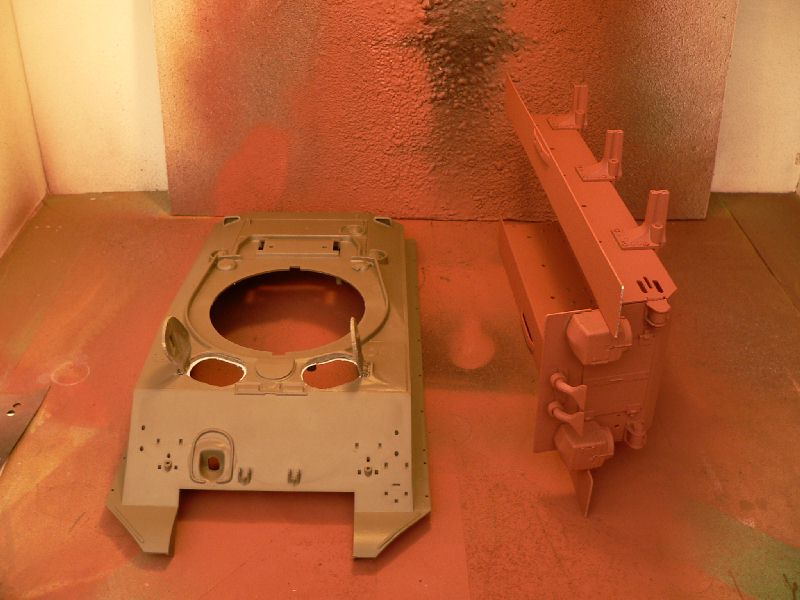 As for my mod, it's made out of semi-circles of plasticard glued on to sides of the mount then the perifery filled in with white milliput to a concave section if possible... Use shaped wooden tools dipped in water to achieve a smooth finish,BBq skewers are ideal for this... The exact thickness of the plasticard is up to you. I tend to work by eye a lot... Just use your skill and judgement in the final choice...The gun and mantlet will almost certainly have to come off for you to work this area and whilst you are at it don't forget to fill the gap across the bottom of the gun mount with thin plasticard, cutting small slots in the card to allow the mantlet flanges to slide up and down freely...