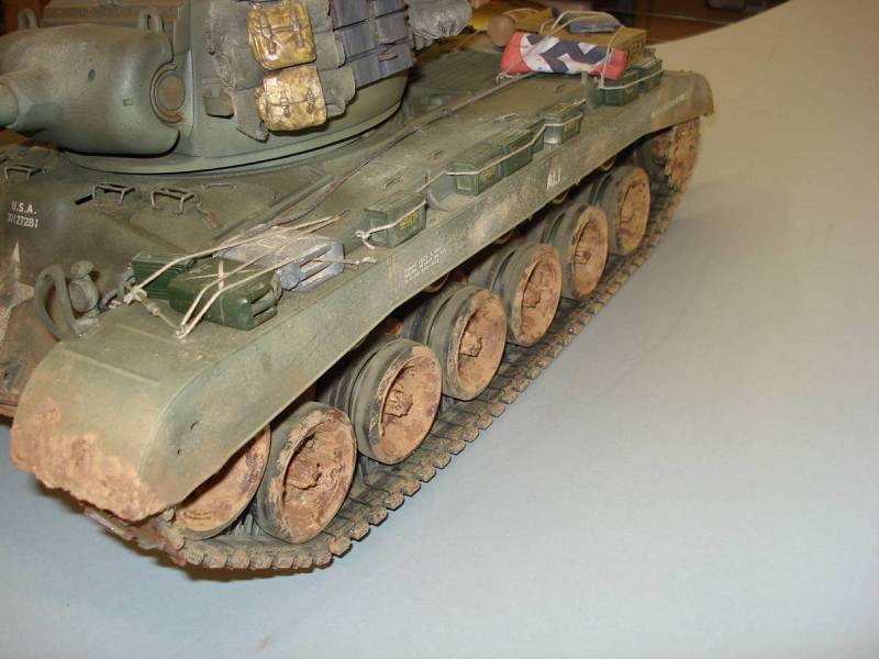 I have worked on 2 Tamiya Pershings, but never quite know what to do with the weathering finish. I sold off the first tank a few years back and then saw it on ebay earlier this year and was tempted to buy it back, but didn't. So later, I bought and rebuilt a non-operational Pershing, but nicely assembled shelf queen into a good runner. Still researching the finish and I am open to suggestions. Real mud is out, because I like to run them in the house too, volume way up.