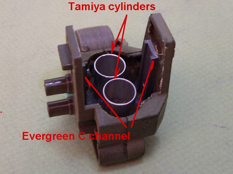 It is time consuming, but the bottom line is these can be built to be fully functional. I used low temp allow on the wheel castings and to fill the void in the suspension towers. This is the only thing that might cause you some concern as not everyone wants to do this. Instead you could use that two part epoxy Mr fix it that is availabe at most big hardware stores. The Tamiya aluminum cylinders are glued into place, and the low temp alloy poured in. So at this point you could just fill the void with the epoxy putty.