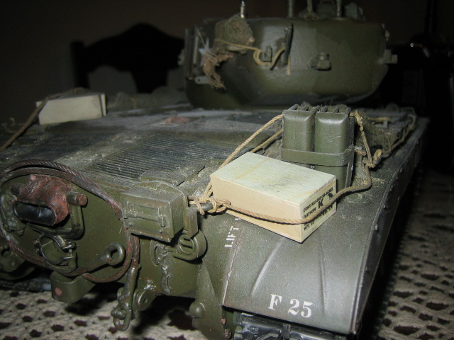 I plan on making a rolled tarp for the right side of the fender,with appropriate simulated straps holding it in place.