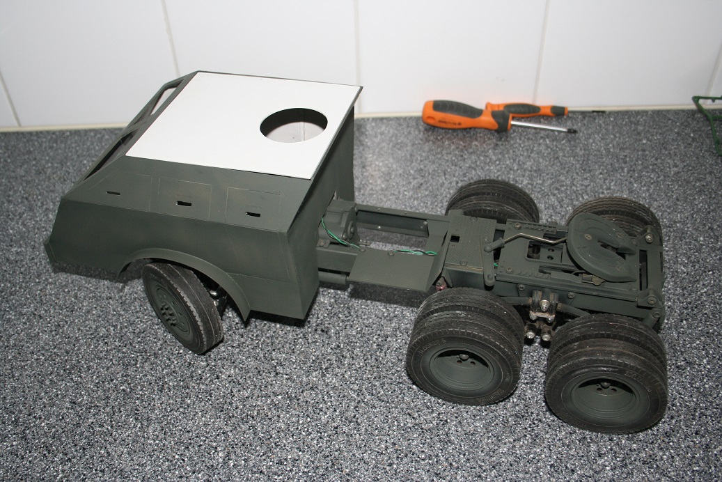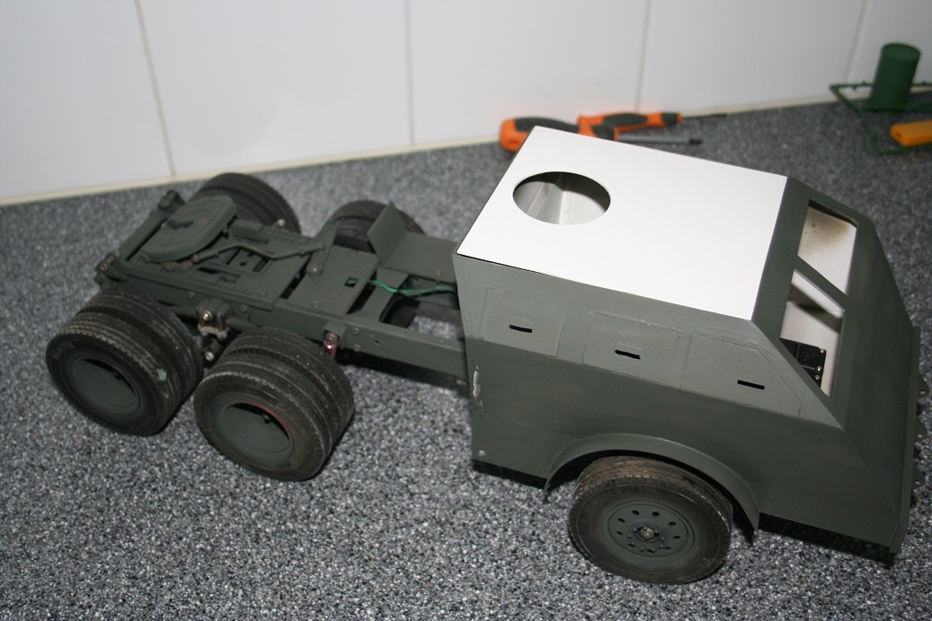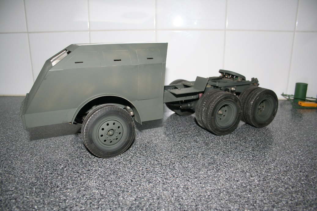 Looking good. I did not even think about where all the electronics would go. I guess no need for interior. That makes it easier. Rex is right about the mechanical equipment behind the cab. I was looking at my 1/35 Dragon Wagon and Yikes is right! That is a project. Good idea about the trap. I like that idea.