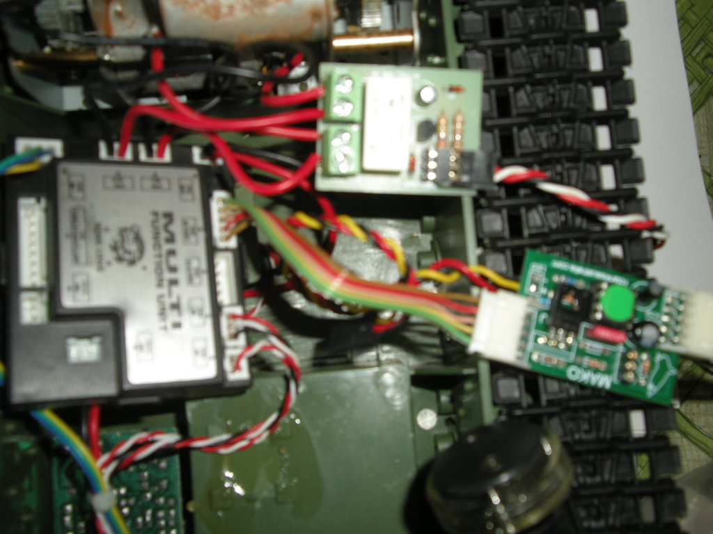 So I got bored and dug out a few old projects and misc electronic hardware I had purchased over the years. I have hooked up the MAKO and ATRC (1a) to a rX18 cpu. I still have the track recoil and super spin which supposedly be eliminated. The tank still acts like a crazy frog when firing the main gun or turning. the apple leds come on for 3 seconds like they are supposed to. If anyone has some intelligence or experience with this conversion, please check my wiring shown in the pics to see if anything looks wrong. i cannot find any info in the instructions that relates to "programming" the hop or spin, just the hits allowed.Near as I can tell I am wired as shown in the instructions. i do not have the Mamba board (loose yellow/red/black wire from the MAKO) but I should not need that unless I want to fine tune the speed decrease after being hit.