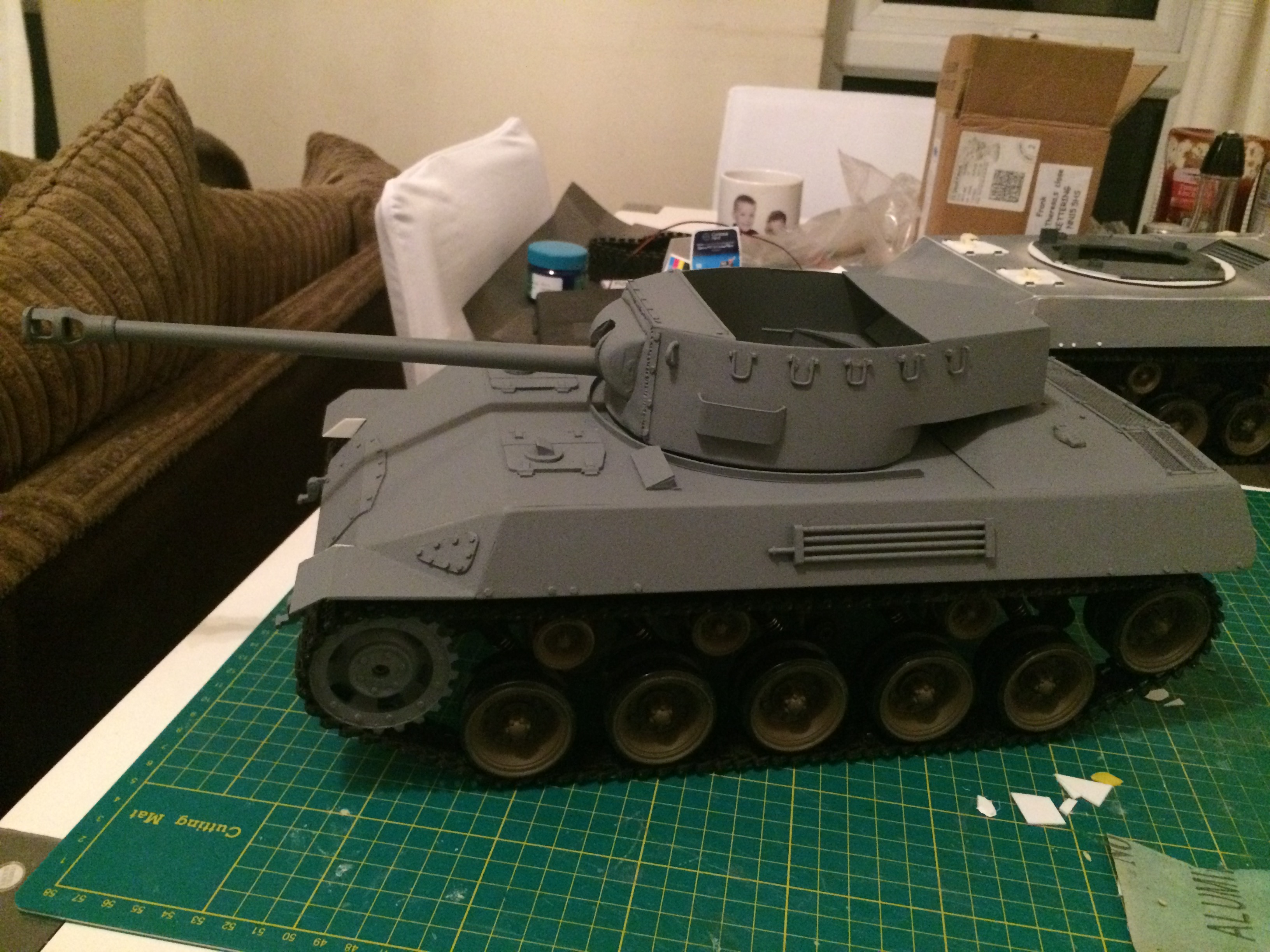 ...progress...added an extra return roller as the Bulldog chassis only has 3 and made the recoil/breach/etc..."disguising" the servo...