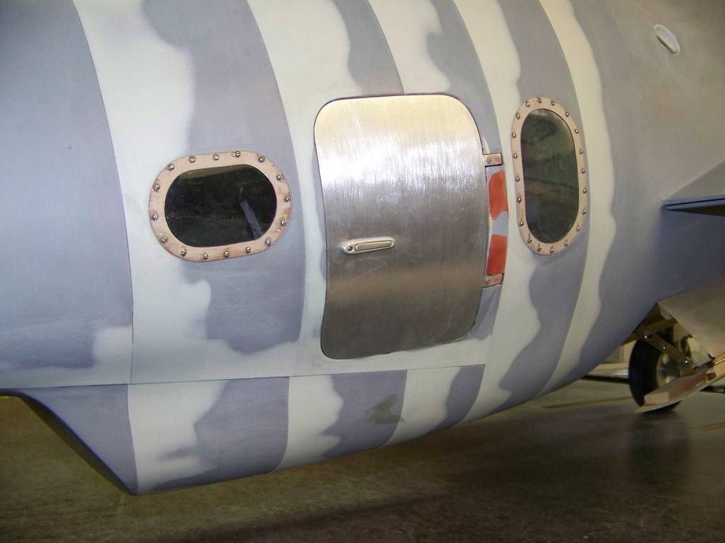 Fuselage in primer with rivets shows finished product.