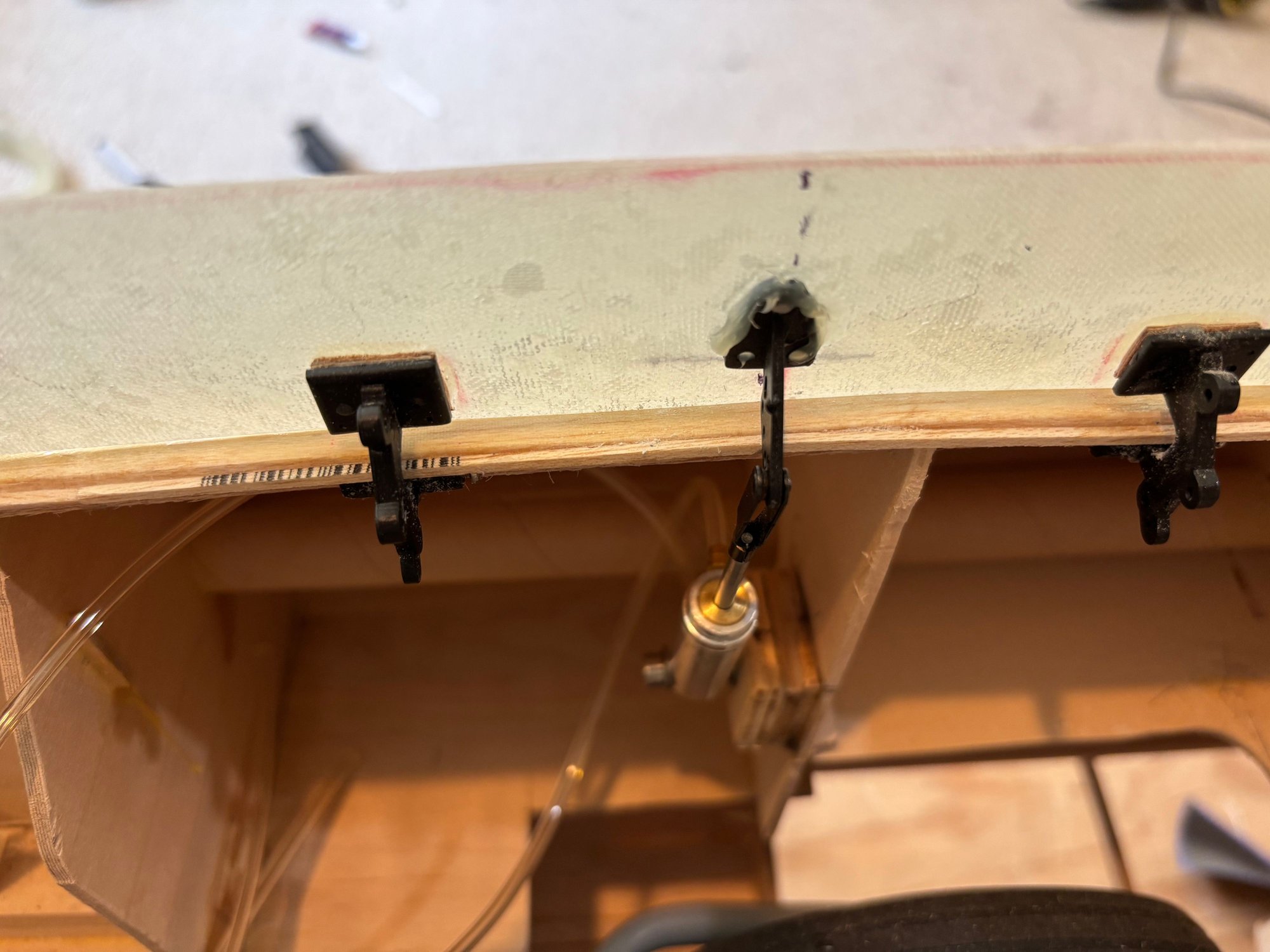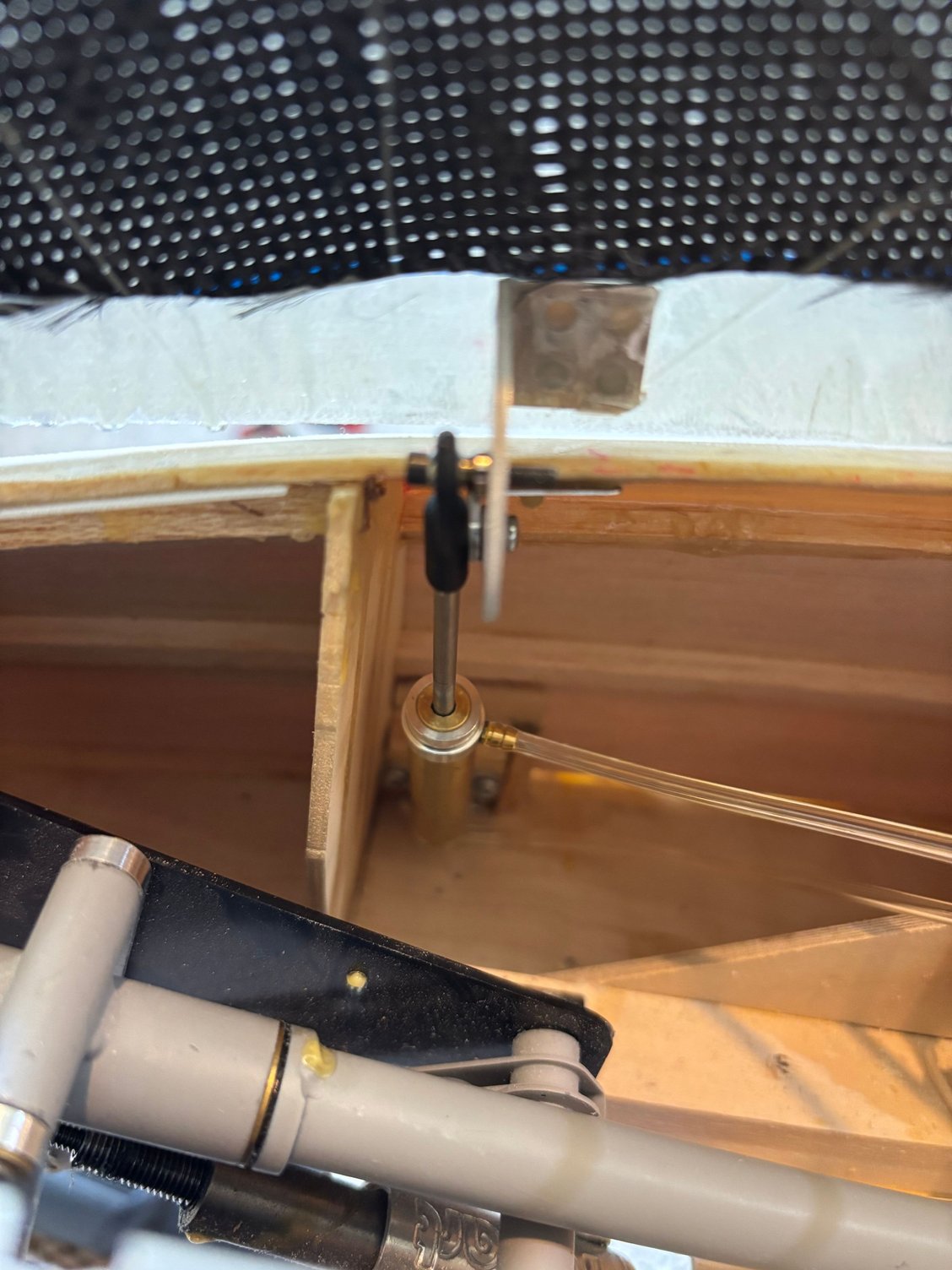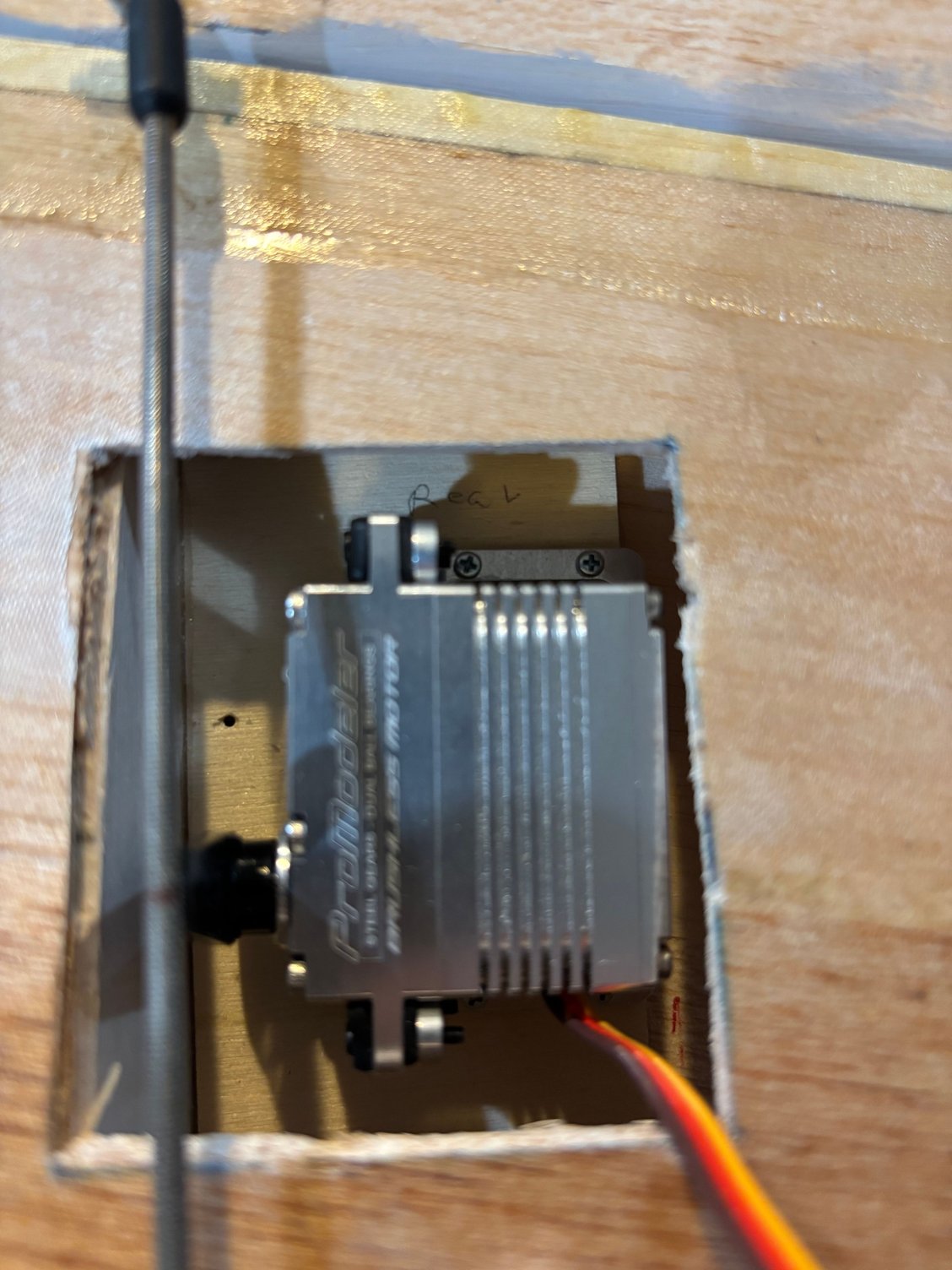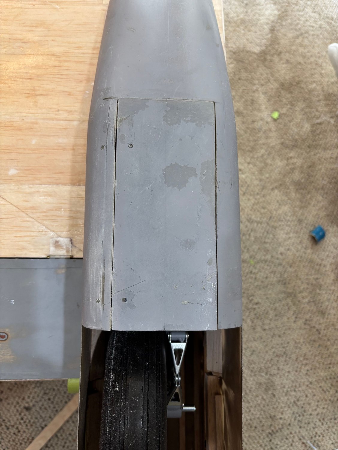 Electric powered motor = 200cc. Custom electric retracts by Robart. 7 and 5 inch wheels respectively on mains and nose. Sound system from Model Sound Inc with 4 inch speakers generating DB605 engine noise