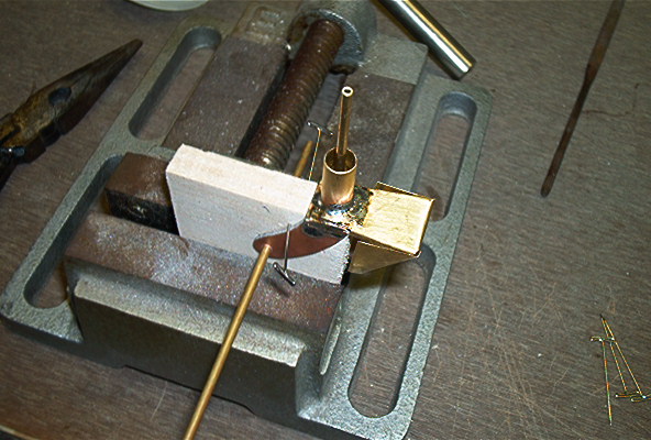 Solder the brass tube on and try to keep it as straight as possible. Try not to get solder all over the tube, if you do use a small file to smooth it out.