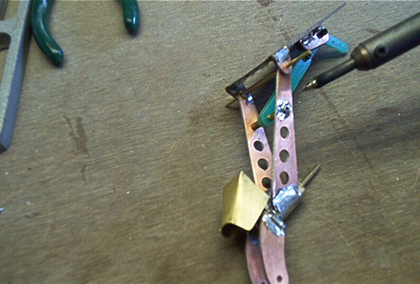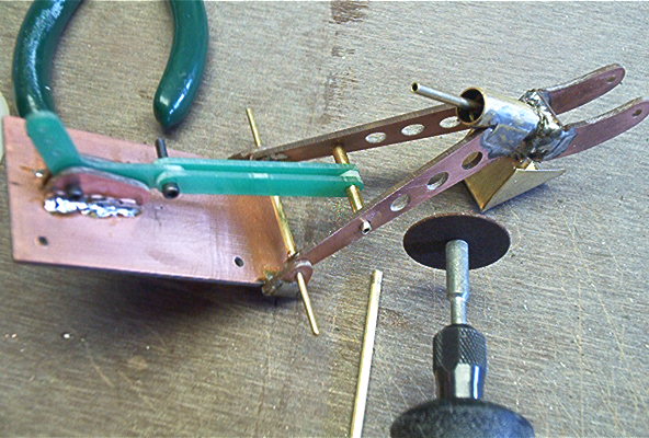 Solder the 3/32” brass pivot tube to the supports.