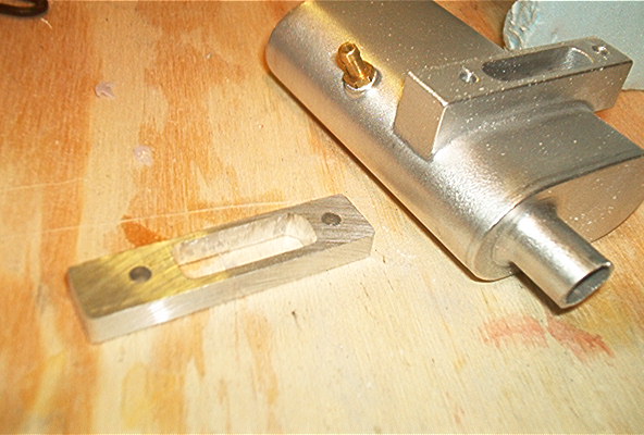 The cowl goes on quite easily, just slide it on slightly off center and twist as you push it to the firewall and it locks on. To add the blind nuts on the bottom I cheated a bit. Not wanting to try and stick them in from the back I just cut slots and installed a piece of 1/8” ply with a blind nut already installed.Hal and I are using the Brisson muffler, fits nicely in the cowl but it does need a spacer to clear the engine mount. I machined one out of 3/16” aluminum and that gives plenty of clearance.