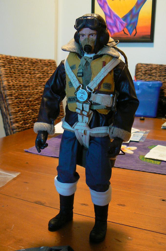 Like I said he is a mess at the moment. He is /will be made up from an Officer and Gentlemen pilot being the legs and arms, a Chinese plastic head and shoulders from a sports pilot and leather helmet and goggles from a B&D (I think) kit pilot. (I'LL double check on the last bit)