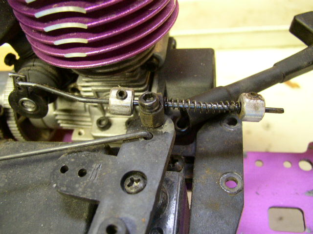 i dont know if this is right but when i use the break the spring has tension the it hits the alum. stops and pulls the rod back even farther pulling the carb shut and killing the motor ive tried the idle screw and that dont work either i was wondering if a shorter or softer spring would be better