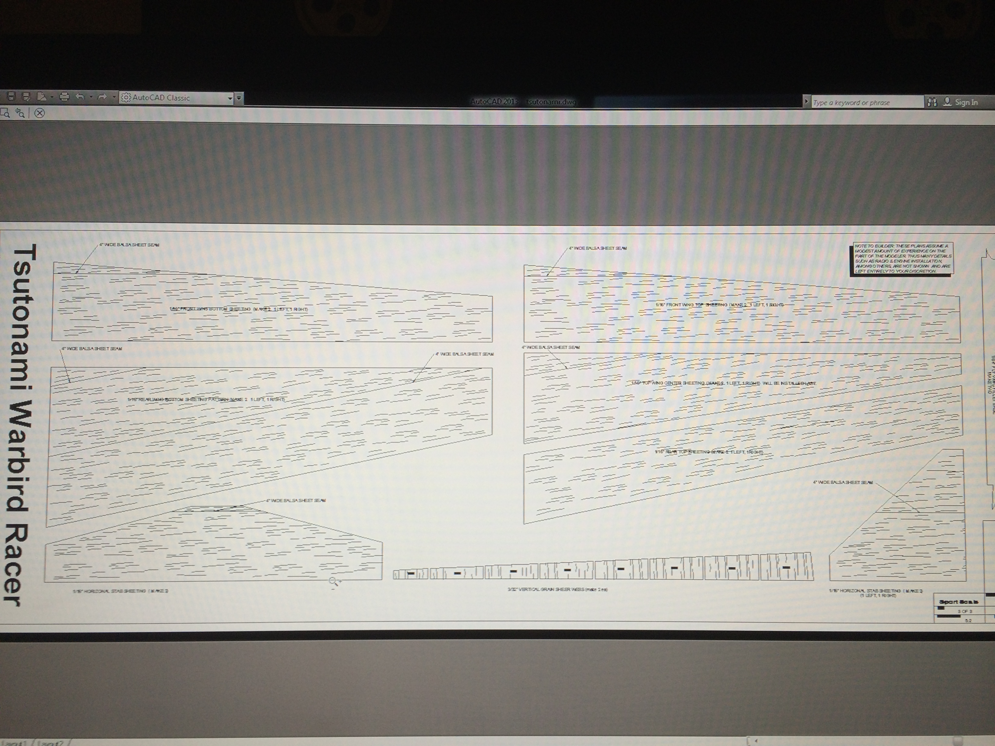 Here is a screen shot of the drawing I'm working on for the Tsutonami. My hope is it will make it easier for the builder to prepare all the needed wing skins, tail part skins, and shear webs.