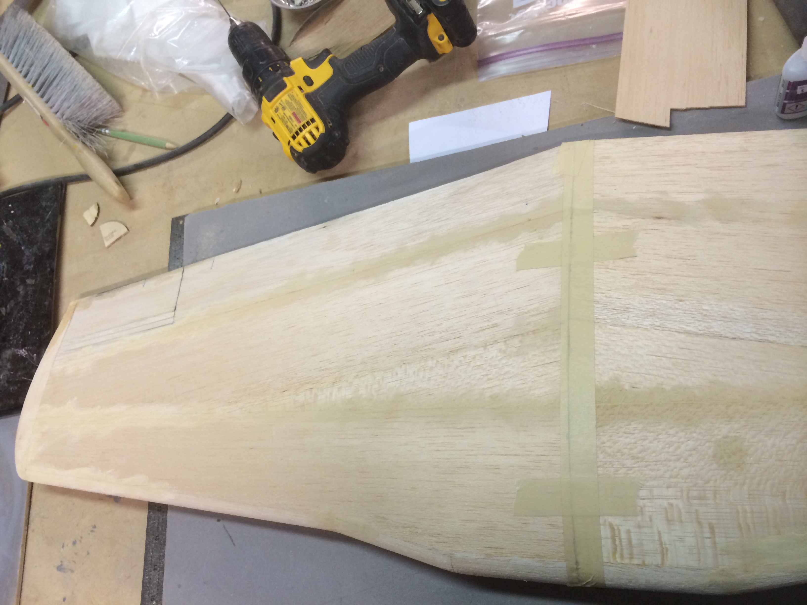 Got the tips installed on the horizontal last week and was having trouble loading the pictures. The elevators have not been shaped as of yet I will have to wait until the fuselage is being build to decide on how I want to do the linkage for them so I decided to continue on to the vertical stab.