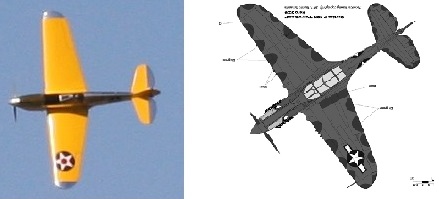 Tommy's p40 wing isnt correct as the tip are skinnier and the wing is longer, the horizontal doesn't match either, the cowl is skinnier. His plane doesn't have a scale prop either. See nit picking can go on all day long. Now I don't care one bit until tommy says other planes are not scale. Tommy we are trying to grow the sport of warbird racing not kill it so leave others alone. If their planes fits the rules and approved by the CD then it is a mute subject.