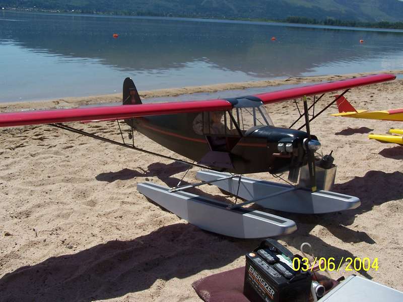 Well yours is going to be a great float flyer. Here is a pic of my cb. It is just a baby to yours but it flys sweet and adds some charicter to the dislpay. Also I will include a pic of mine with my buddies .60 size cub. He really likes his on floats also.