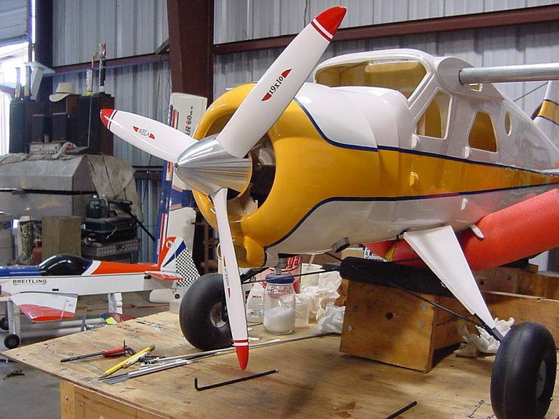 couple of other points....on my kmp beaver....controll horns (plastic 2 screw pinch tupe)totally eliminated.....used carbon fiber horns used on jets...these are hysoled into slots drilled into wing/flap/ele hard points...good for200 mph plus...no ugly backing plates....earnst h20 rudders/proctor pullys work fine....if they bind its due to lower button head screw...too tight....or molding distorted...get new ones...engine....evoulation 26/35 seems to fit cowl best....35 for higher alt lakes.../ft windshield...dont use supplied screws...use any good white/canopy glue...much cleaner install and h20 proof when cured....side windows go in good w/omni/goop into small syringe for tiny non/sloppy bead/1.5-3 float inc to wing inc fine...step position not that critical....1in either side of c/g/servos...digital/mg/65-80 oz fine...im using hitec mgs...very little gearbacklash....good value/im using twin lipos w/regulators....light and c/g good with heavier evo 35/19/10 carbon fiber prop......sinc kp couch