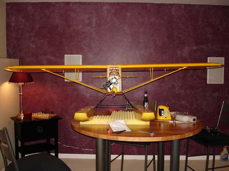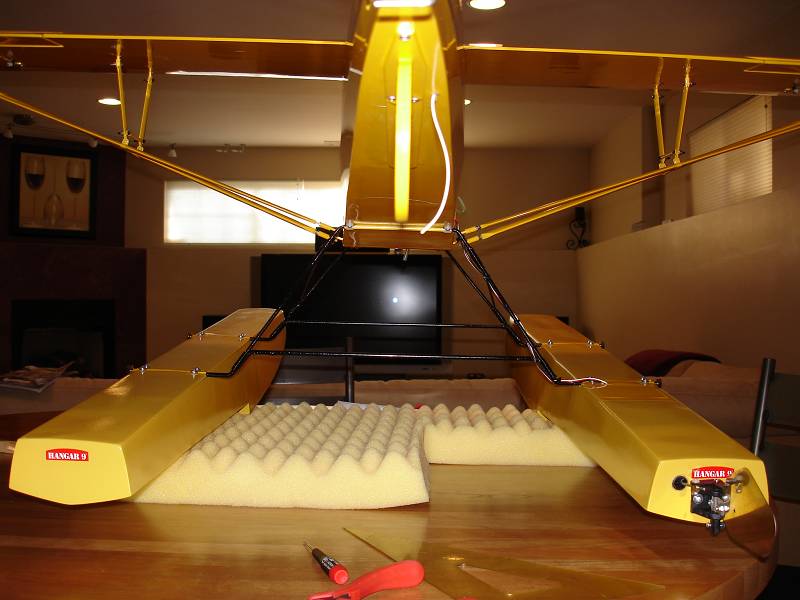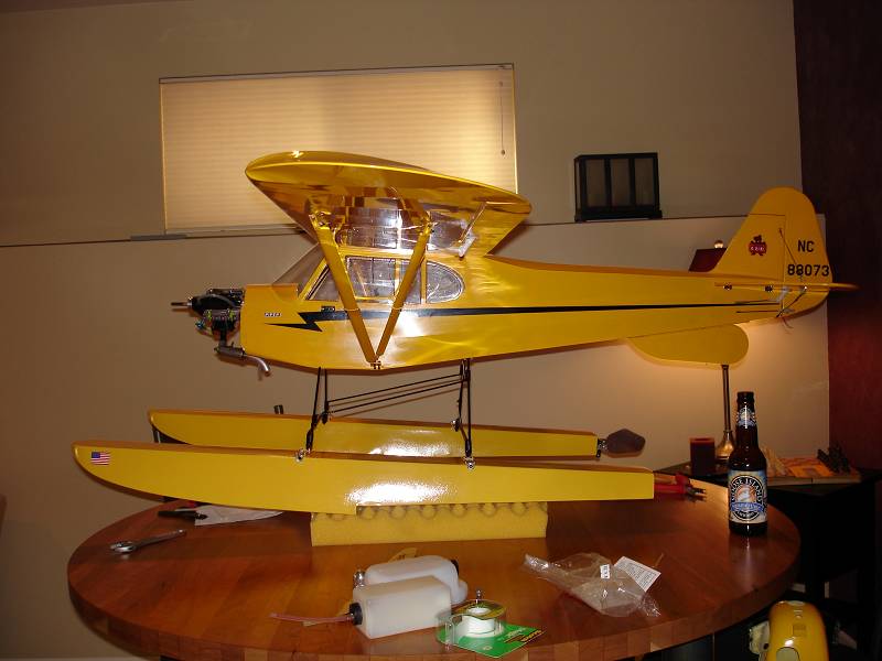 1) The floats are straight to the fuse - I plummed a line from the CL of the floats to the CL of the fuse down the length of the fuse and it is parallel all the way down. Top of floats are level.