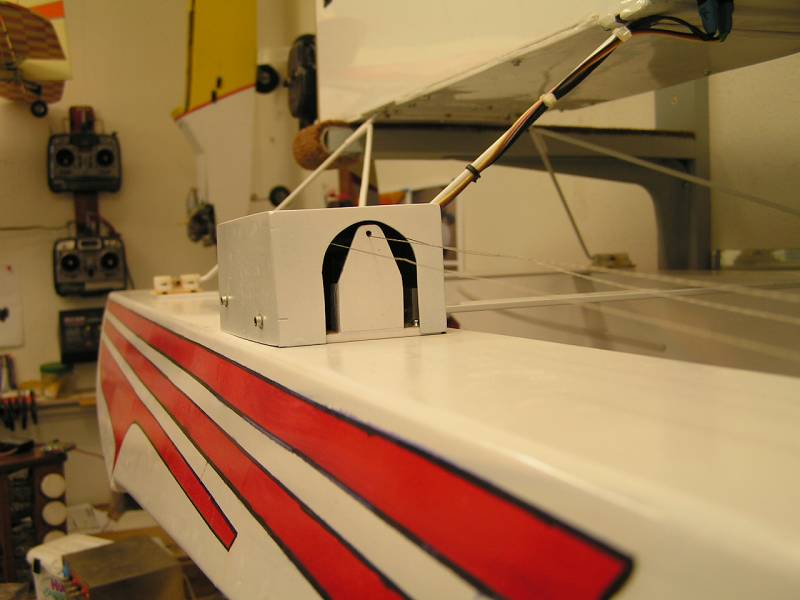 All that is SO much more work than rigging a proper set of cables, and with the servo in the float you'll have the servo wires looking like a scale set of heavy-duty jumper cables hanging out of the plane.