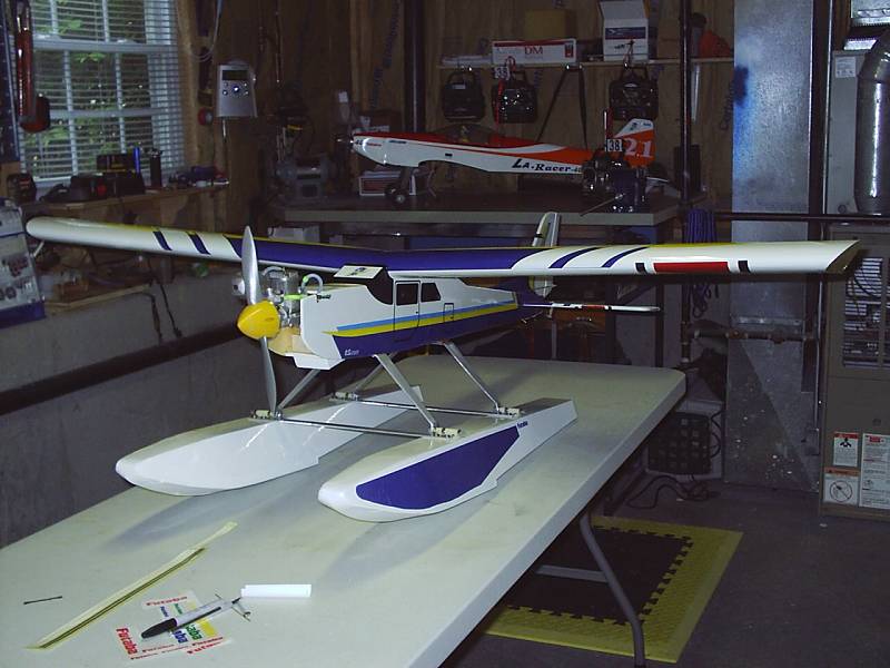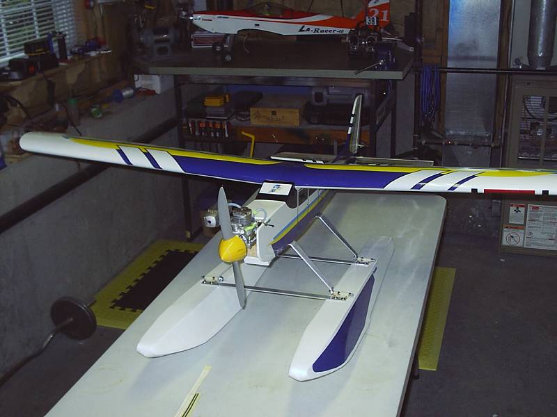 Very nice job Brainiax. That float setup should work very well on the water. On a high wing airplane, you will usually need either water rudders or an enlarged air rudder. My preference would be the larger (2x) air rudder because it will also help tracking in the air.
