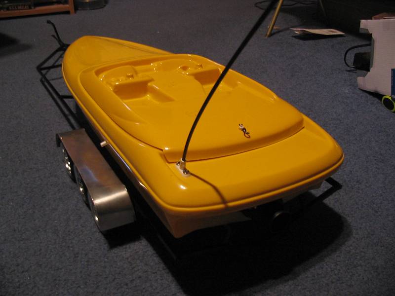 Oh, and one other thing, jet boats are hard to bring back in when flipped if you're using the ol' fishing pole. There's nothing really to "catch" with the line because there is no strut or rudder sticking up. Be sure to tape well!
