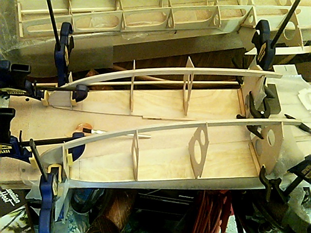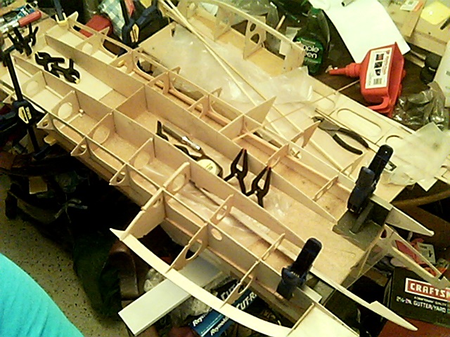 The first one shows the Pak when I was gluing the rear framing together. The second shows the framing glued in up to the middle crossframe. The right sponson is also all glued to the sponson inside. The glued on rear bottom is also visible under the clamps. The third and fourth show the sponson cross frames installed onto the sponson insides to my replacement 2000 Elam hull. I now need to get the lengthwise frames fitted and installed so that I can start adding skin. I didn't take any shots of the Executone this time since I haven't done anything to it in several months http://www.rcuniverse.com/forum/atta...mentid=2115603http://www.rcuniverse.com/forum/atta...mentid=2115604http://www.rcuniverse.com/forum/atta...mentid=2115605http://www.rcuniverse.com/forum/atta...mentid=2115606 |