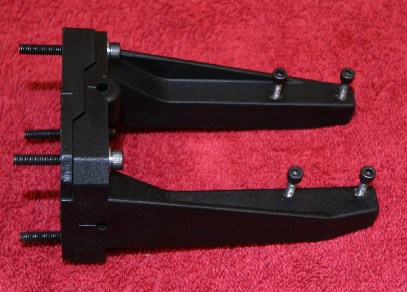As for the hole size, a lot of that depends on your mount and how the front end of the plane is made. You can drill and tap the plastic, or you can make the holes a slip fit for your screws and put a nut on the bottom. Use loctite or a a nut with the rubber insert to make sure they don't vibrate loose if you go the nut route.