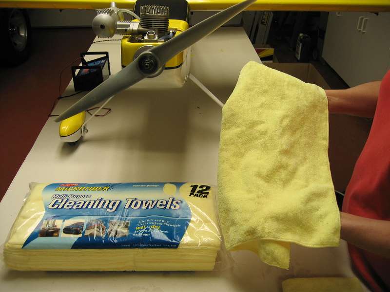 I've found a really good product for cleaning airplanes at Home Depot. These towels work like magic and make your covering shine like new. I first wipe off the oil and dirt with paper towels and then use these cleaning towels with just a little Windex. The results are fantastic and every little smudge and smear can be removed resulting in a clean mirror like finish. Just wanted to share it............RS