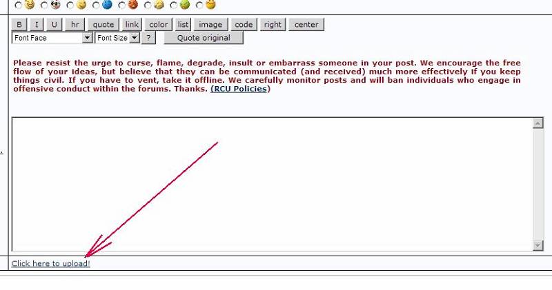 Step 3: Click on "Click here to upload! I believe there is a size limit, so your photo should be JPG and no more than 50 - 60K. Not positive about the specific size rules though. But Steps 1 - 3 work for me.