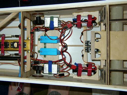 Or, for those with alittle bigger planes and more room to work with, here're some pics. The board is suspended across the fuse on 2 pieces of foam rubber, one on either side of the fuse. Just had this brainstorm this winter.