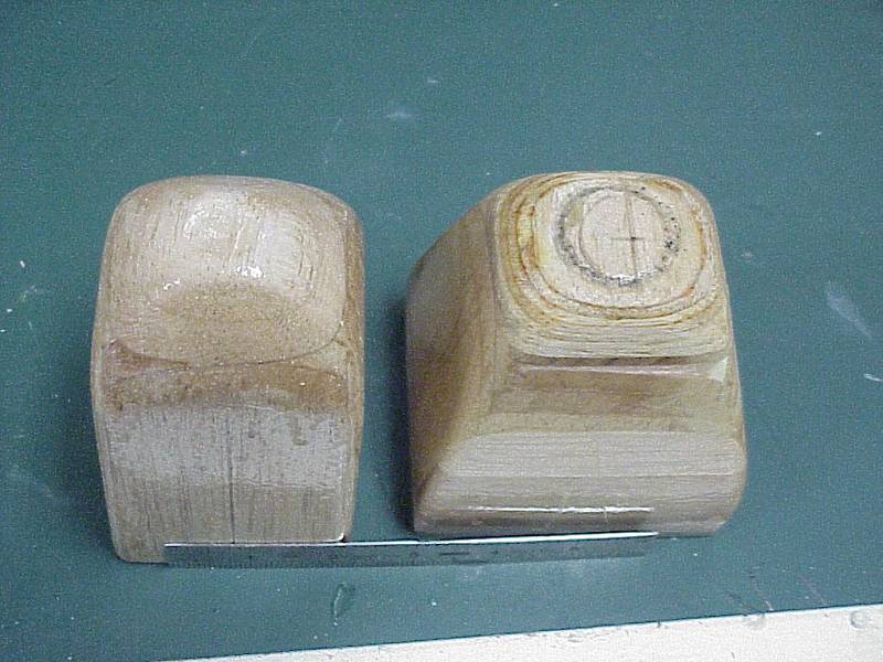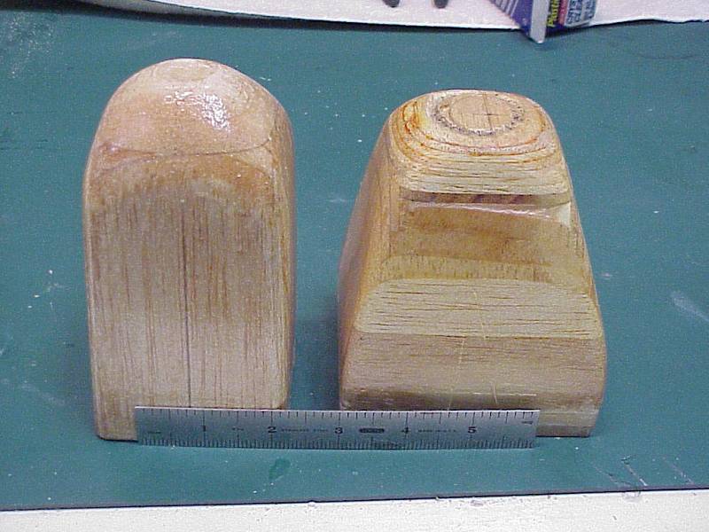 Here are a couple of pictures of the plugs that I made. Foam covered with balsa, shaped and then varnished, etc. I don't remember exactly which bottles I used, but seem to recall that I used a one liter pop bottle for the Dazzler and a wide mouth apple juice bottle for a larger cowl - just large enough for the plugs to fit into the cutoff neck end. I used my monokote heat gun to shrink the pop bottle. One thing that I did that you may wish to consider is - don't throw away the bottle caps. Instead, put a tire valve stem in it and then after shrinking the plastic put the top on the bottle and pump air - I have a compressor - in the valve stem and this will expand the plastic away from the plug. See third photo.