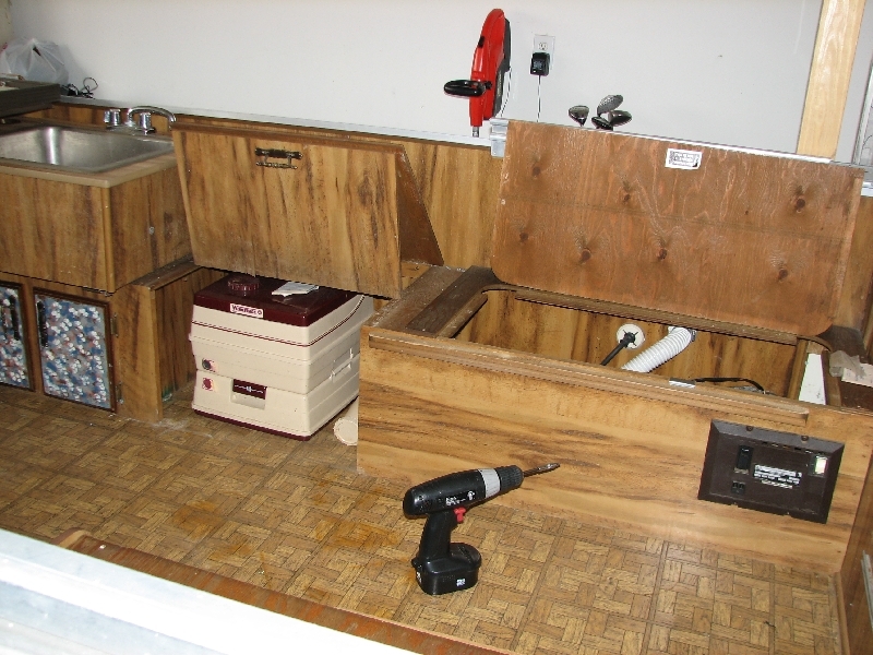 I appreciate the thoughts but at this point I'm really considering just going ahead and tearing out all the internal cabinetry and such and just buying 1/4 or 3/8" ply and putting it down right over what's there (after just a good cleanup, maybe some bleach based spray to kill any mold/mildew and then dry it out best I can) and then using either 1/4" ply or 5mm Luan (sp?) and covering up all the side walls similarly. Basically just building a box within the box so that I'll have a nice clean new finish on the entire interior. My reasoning is this. I examined the floor and confirmed at an RV dealer that the floor in this trailer is ply over an insulation layer over ply and it's all glued together! If I go to pull that out it's going to be quite the mess! I'd probably end up having to pull it all out and rebuilding the whole thing. Liable to be expensive and a big job. Neither of which I really want to tackle... Will if I have to but hoping I don't have to! If I fix the leaks I think just covering it over will last a very long time. and tearing out all of it does have the plus that whatever I put back in for storage (cabinets, deck boxes or whatever can be where I want it, not wherever it already exists. Very flexible. I hate losing the counter top but don't THINK I can keep it and accomplish this without adding a bunch of complication to the project... Oh well, I can always add some back in, can't I!?