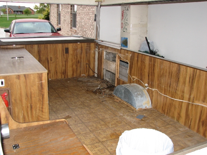Yep, there's lots of soft, wet, rotten wood under there. Not all of it is that soft and wet but the back corners are practically turning to dust and there's that pretty black color that pretty much tells me it's all absorbed a little dampness over the years. Now the big question is what to do about it. I don't think I can tear it ALL out 'cause it appears to me (not sure yet) that the sidewalls sit on this base plywood. If I tear them out as well what's left?? Can I/Should I just buy some 3/8" waterproof ply and cut it to size and burying all this underneath?? With just a little liquid nail and some careful measuring and cutting I could piece it in... maybe just 4-5 individual pieces and then caulk around the edges to sort of seal it to the sides?? Would give me a good base for screw eyes or whatever to tie planes to... Anyone faced this?? I'm not looking for perfect here but would like to have a reasonably solid/level floor. Guess I could strip the rest out (all the cabinets etc..) 'till it's just a box and then start pulling all the sidewalls and the floor up as well. Anyone know how the floor is held in place?? The sidewalls? How far stripped down should I go until I'm going to be forming new sheet metal