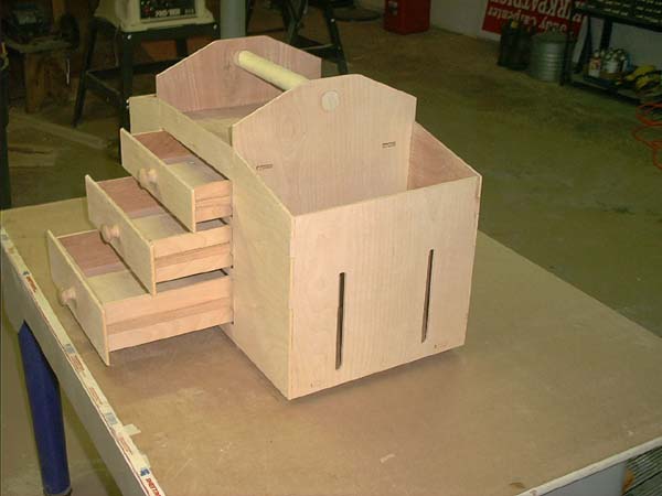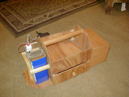 I made mine from a plastic garden cart from K-Mart. It holds everything (more than) I need, Rolls obediently behind me, and I can sit upon it. I wrote a construction article and sent it to the magazines for publication. They rejected it, but you can still get the article from the internet. Other plastic toolboxes work as well.