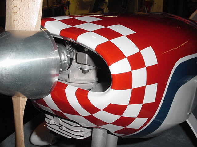 CBK: Thanks for the pictures. Illustrates why it is necessary for careful masking of the cowl. None of the "squares" is the same size and shape. A way needs to be found to taper each of the checkers from front to back and side to side. [Answering an earlier post--no can't scan the article because I don't have the machinery to do so.] Some magazines have a service where they will photocopy articles, I know that R/C Report does. Email MAN and see if they have a similiar service. Their site is: www.modelairplanenews.com. There is usually a "contact us" section. Regards.