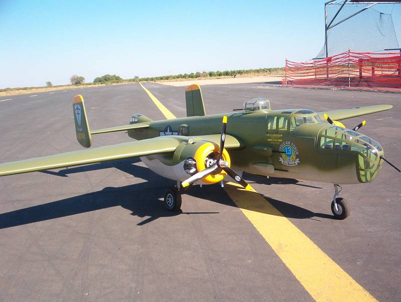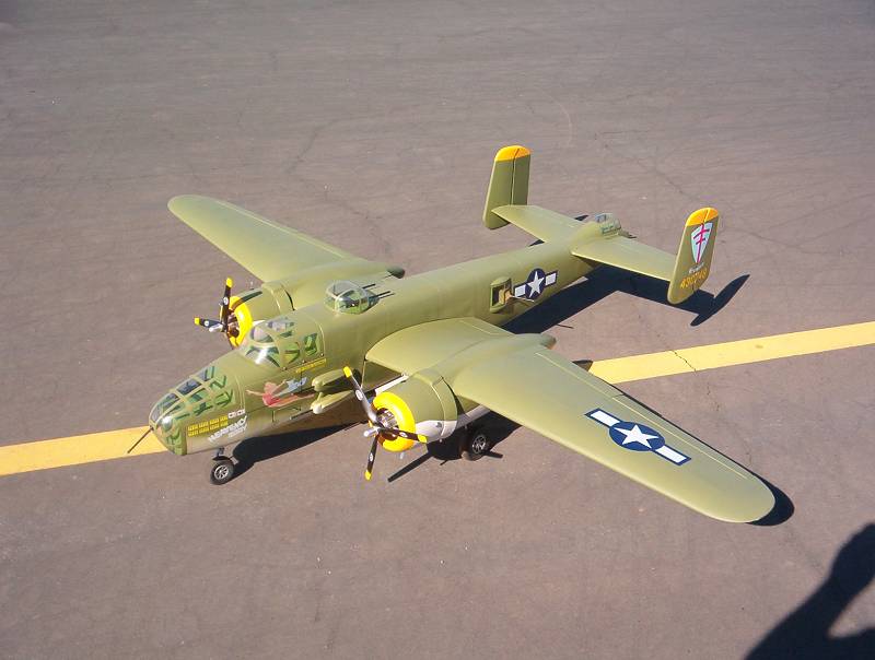 I have a question for others that have flown their B25. I have had mine for a few months but due to health issues I have fianlly got to maiden it today. I checked the CG and set it slightly nose heavy on the marks shown in the manual. The plane was tail heavy and made for a very interesting takeoff , but after I gained alitute the plane handled great. Anyway what and where are you setting the CG at for the B25. Bomb bay doors are next on th list. I had already made the layout for the task just not enough time