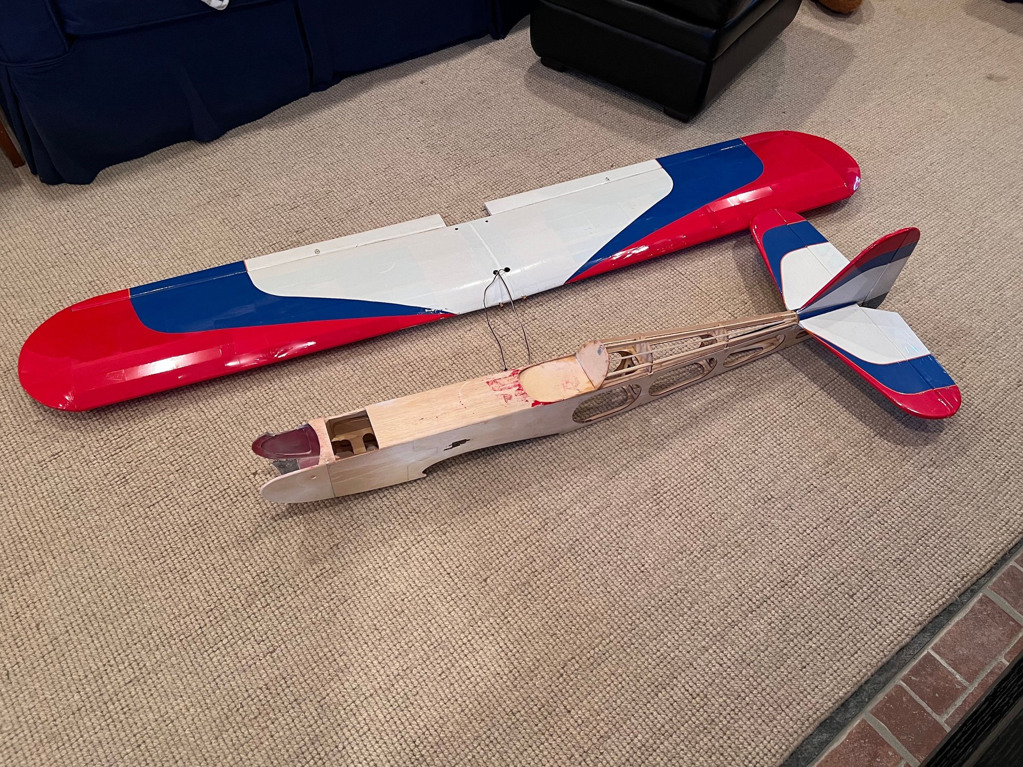 I picked up a 4*60 a couple of years ago off of FB mkt place. The guy was trying to convert it to electric and gave up on it. I picked it up real cheap but it is badly fuel soaked. Trying to dry it out with KR2 & heat with towels but this may be a perfect candidate for a twin conversion. It has a 79 inch wingspan with the added wingtips.