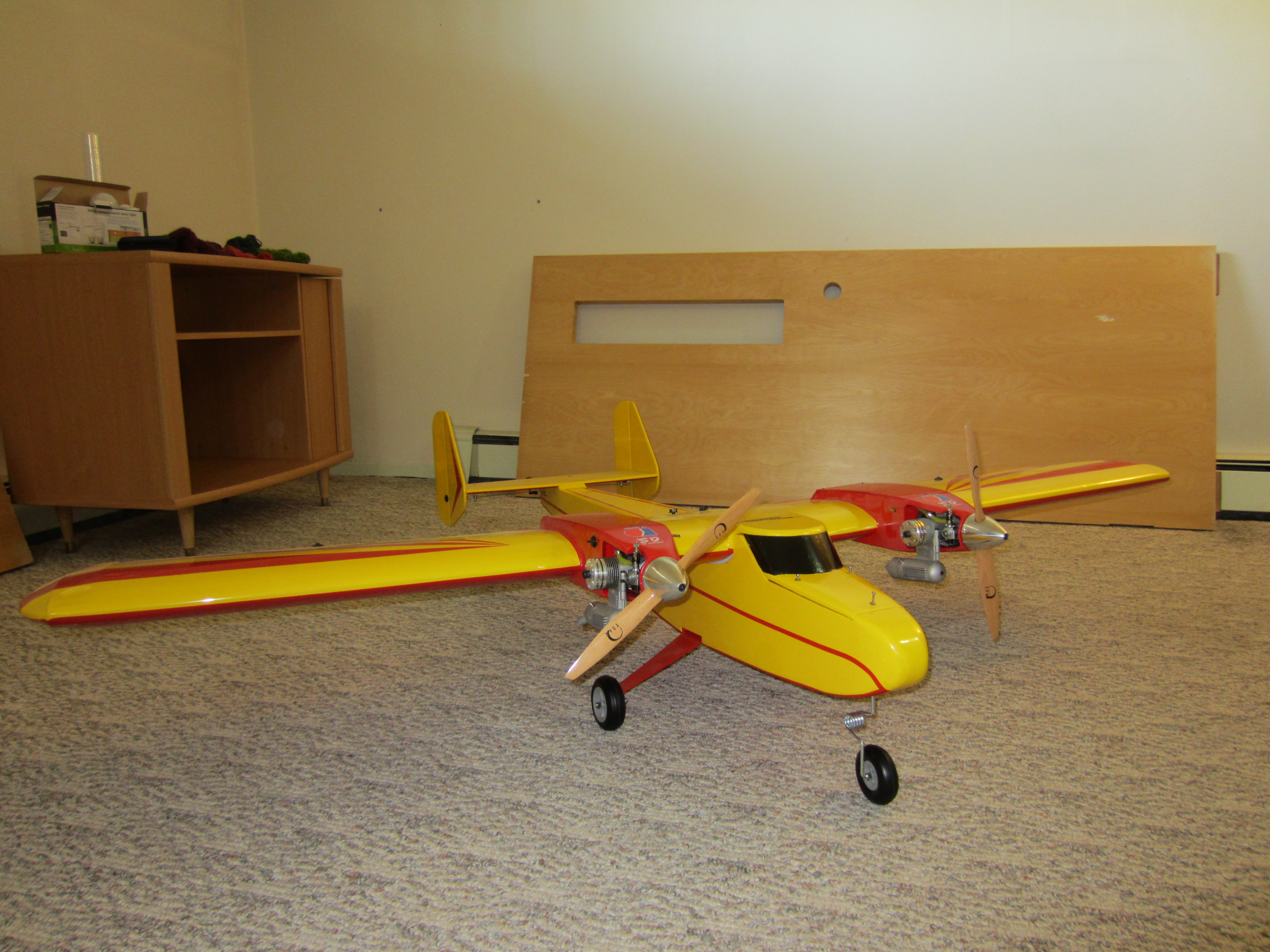 Ya, that guy that came up with that deseign said it flew with no issues. I wish he was at my field, we would have had a word!! 😡. Don't know if you are interested in building from plans. If you are, the RCM Twin Trainer plan # 724 is a fantastic flyer! It took me a lot of time to build but if you really want a twin, this one won't dissapoint! You can actually download the plans for free from the web. I have included a picture of one before it was covered. What you think??