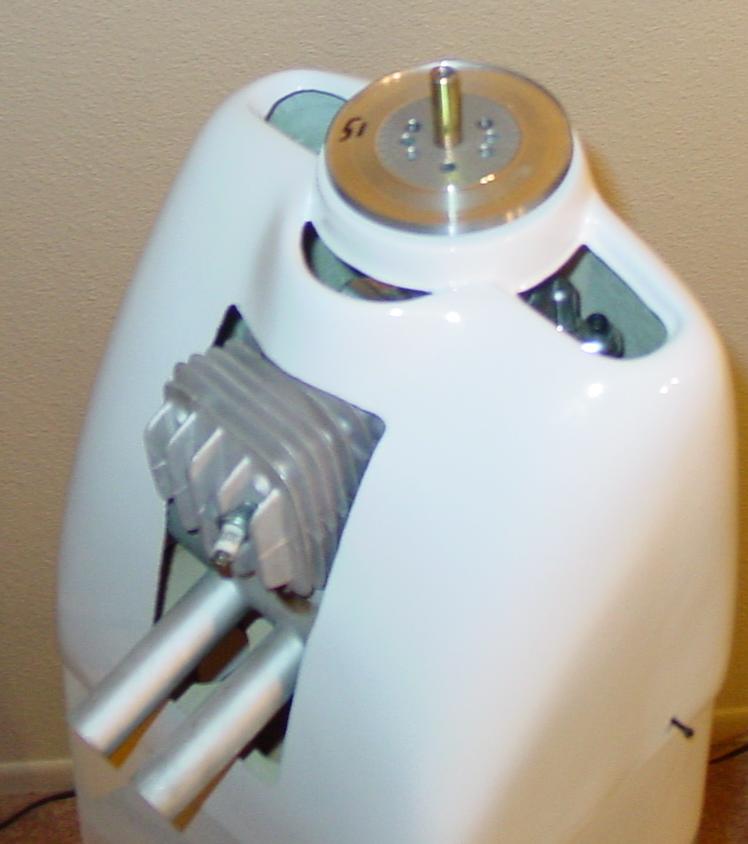 a. I had to find out how deep the firewall to engine cowl opening was. I found it was 7". The DA50 with 3" mount legs is 6 7/8" tall so by adding 1/4" spacers I can get 1/8" clearance between the nose cone back plate and cowl. I used 1/8" flat aluminum doubled up as spacers. They aren’t pretty but they work.