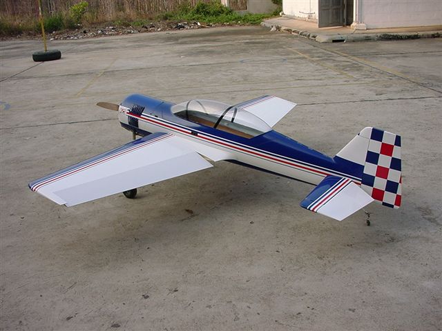 FYI this one has a DA-50 in it. With 2 2100mah 6v Nimh battery packs mounted just behind the firewall it's still just a little tail heavy but flyable.