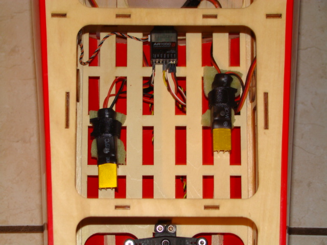 ok Tom, I really wanted the fromeco Sahara reggs but TBM didnt have any in stock, but Ill keep a close eye on the MPI's till i gan can get some Fromecos, what other good regs. do you recomend? Some time its hard to get RC stuff here in Honduras we mostly get things when one of us or family go to US. I have 1 of the Regs. Hooked directly like you said and the other Y'ed in with the chock servo, so I have them just behind the receiver as u can see in the pics,I dont even know if the mouting metod is correct since these are my fist regs i ever use, I have them on a piece if foam with velcro, the foam is only touching the black part of the reg wich leaves the Heat Sink in the air not touching anything, i guess thats a logic part to make the Heat sink not touch anything. As for the batts I would like to put them right behind the wing tube, but before that I have to put the wings on and check the balance. I'm new to the 2.4ghz system wich claims to have no Interfarence with bats or regs close to the Rx but I want to be sure what I'm doing and get some advice before I go and loose the plane for some simple thing.