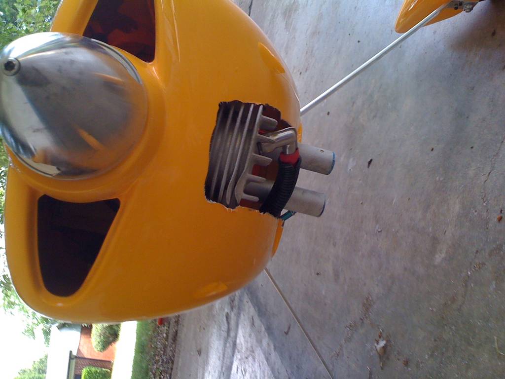 Well, I broke down and got the dremmel tool out today, and with great apprehension started cutting the cowl. Below are the pictures of the outcome. It looks like there is a slight offset between the back plate and the cowl, is this normal or at least withing tolerances?